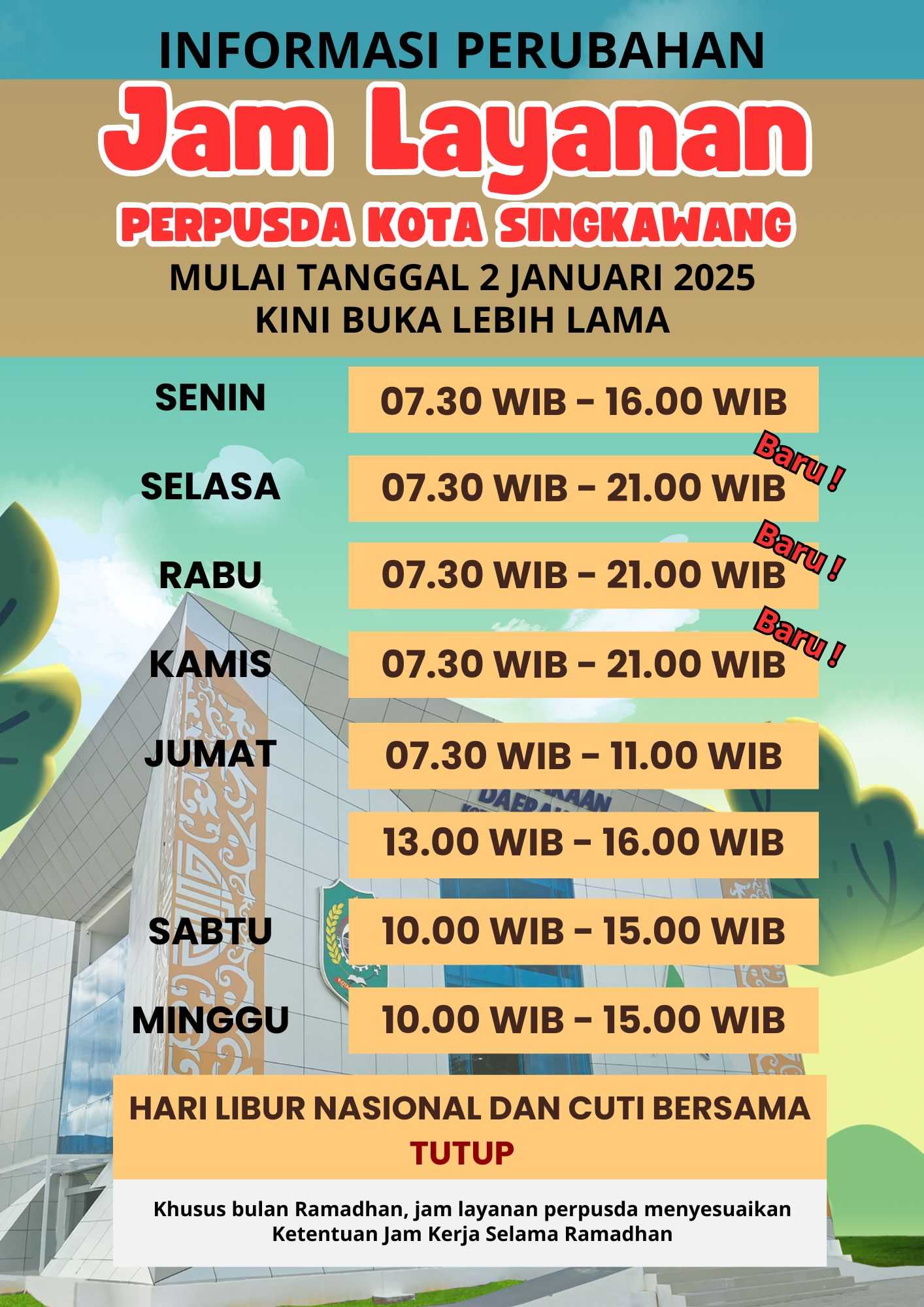 Dinas Perpustakaan dan Kearsipan kota singkawang berupaya semaksimal mungkin menyediakan pelayanan Prima dan tidak dipungut biaya
