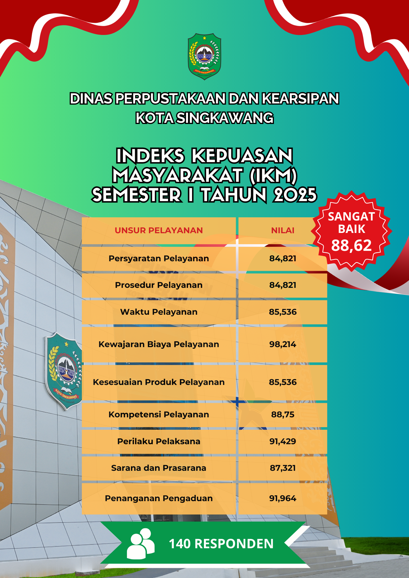 Indeks Kepuasan Masyarakat (IKM) Semester I Tahun 2025 Dispussip Singkawang